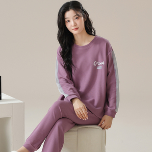 宽松加大码 都市丽人纯棉睡衣女款 套装 长袖 家居服可外穿 夏2025新款