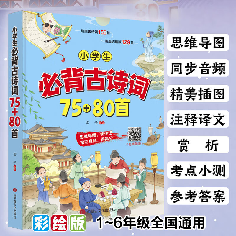80首 扫码 适用于1 思维导图版 有声朗读 6年级 小学生必背古诗词75