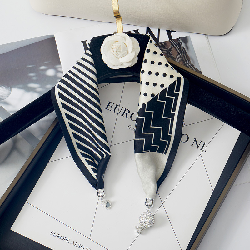 饰脖子围脖小围巾珍珠 春秋护颈装 项链式 磁吸扣丝巾女夏天2024新款
