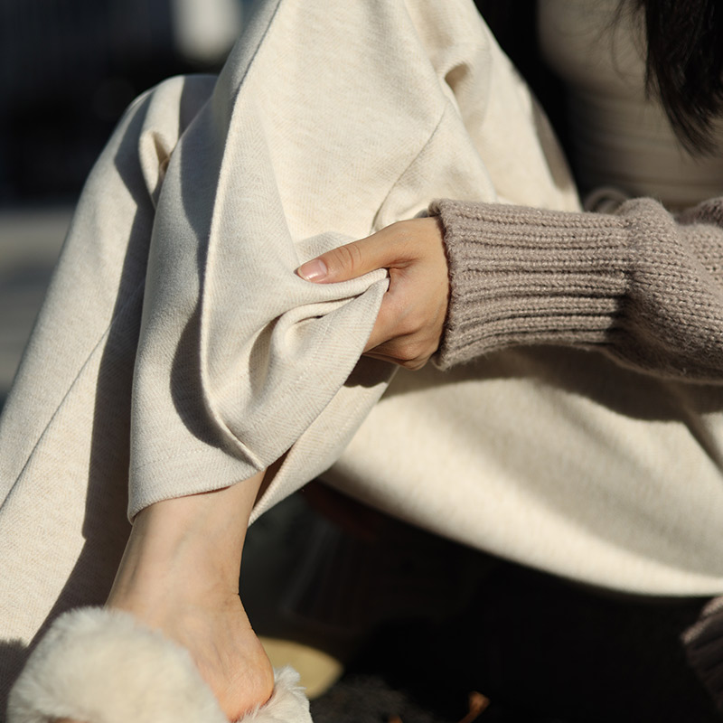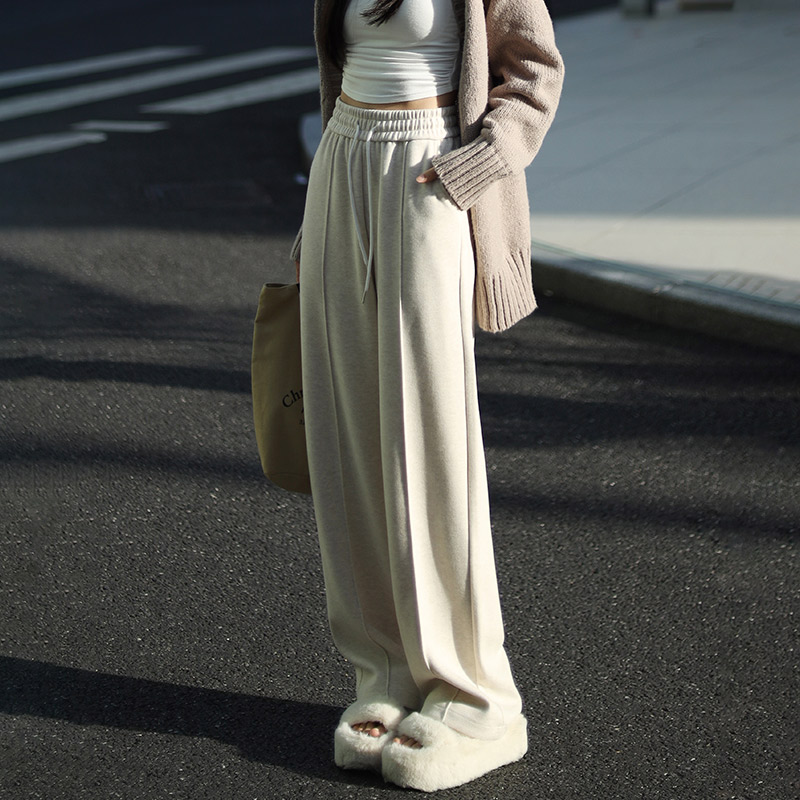 加绒街舞穿搭褶皱宽松休闲长裤 女秋冬季 子 灰色运动卫裤 自然涩美式