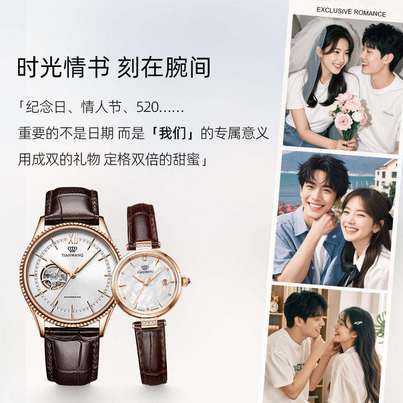 情侣手表结婚礼物 31368 天王手表机械男表石英小花瓣女表51154