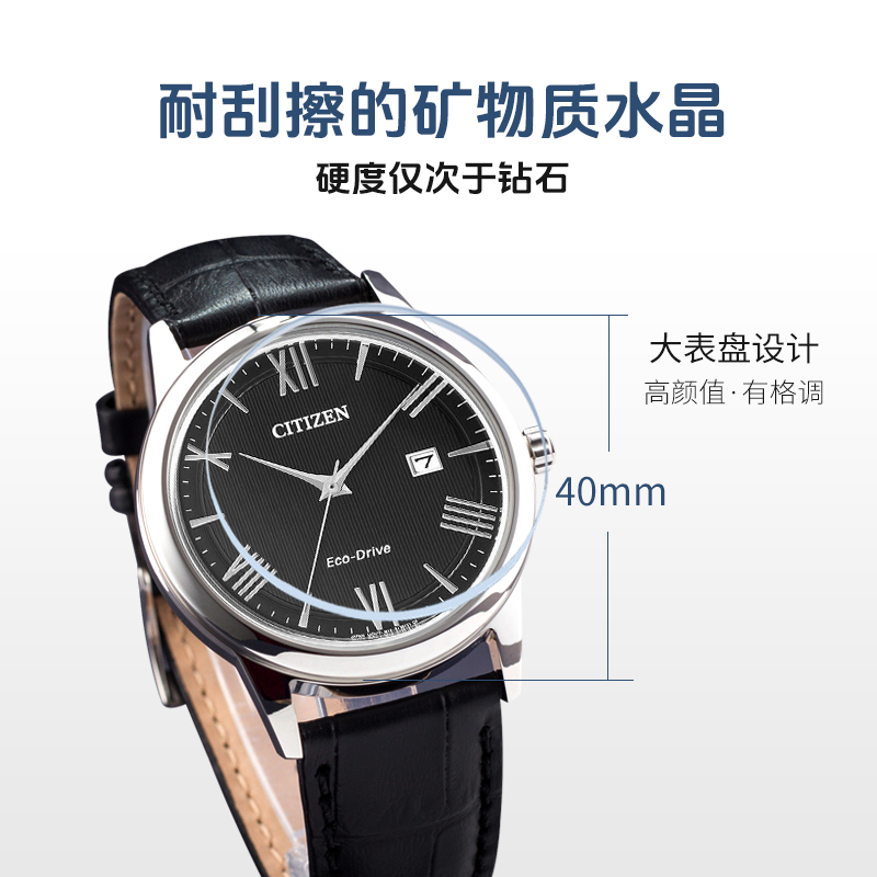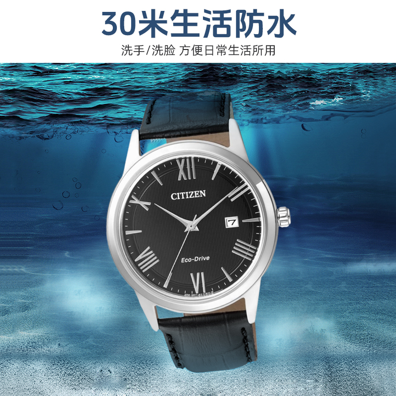 Citizen西铁城光动能手表AW1231真皮带石英男表进口防水男士 腕表
