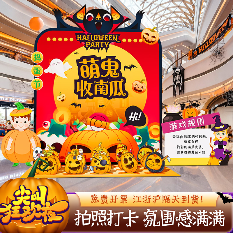 万圣节场景布置氛围装 饰酒吧套南瓜套圈游戏互动道具kt展板定制