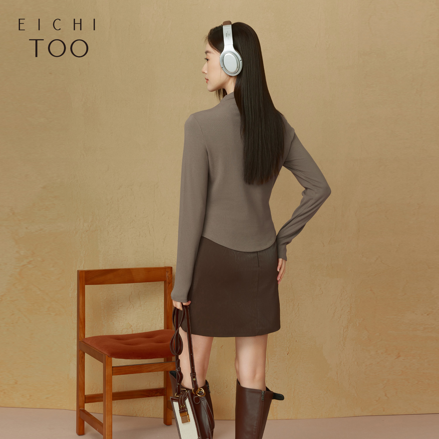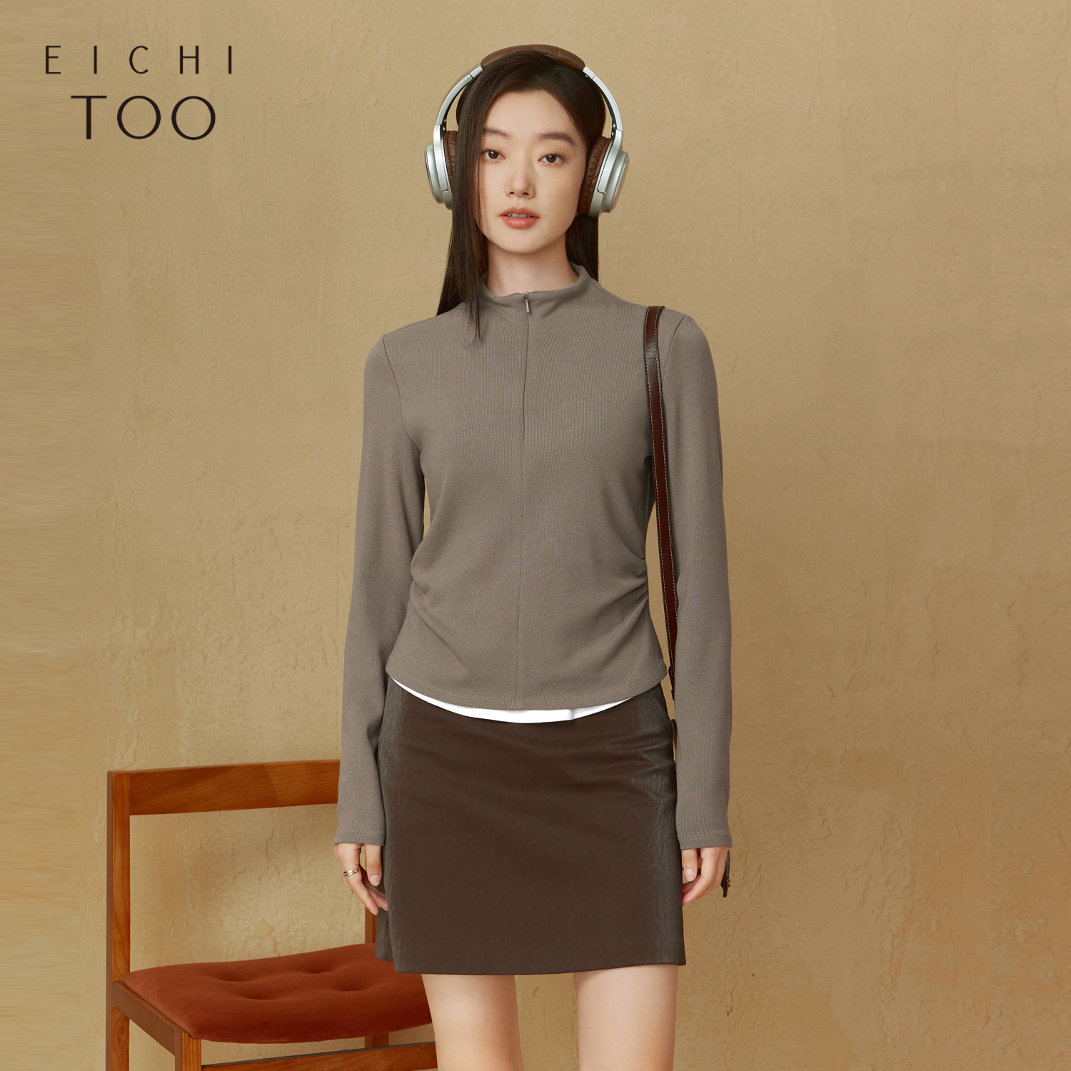 拉链半高领打底衫 爱居兔假两件长袖 修身 女春秋新款 T恤针织衫