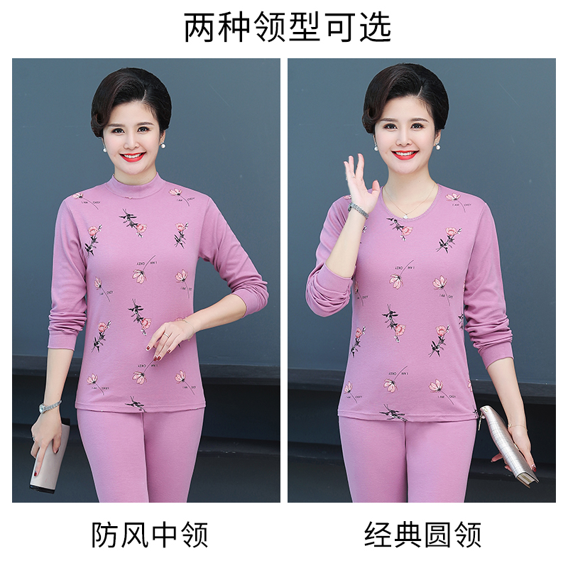 女士纯棉套装 女款 保暖内衣棉毛衫 保暖衣冬季 低领 线衣线裤 秋衣秋裤