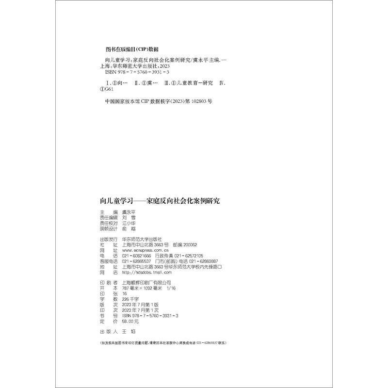 虞永平 学前教育家庭教育 教师用书 向儿童学习 书籍 华东师范大学 家庭反向社会化案例研究 反向社会化研究 正版 50个案例分析