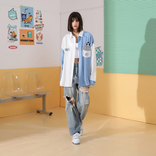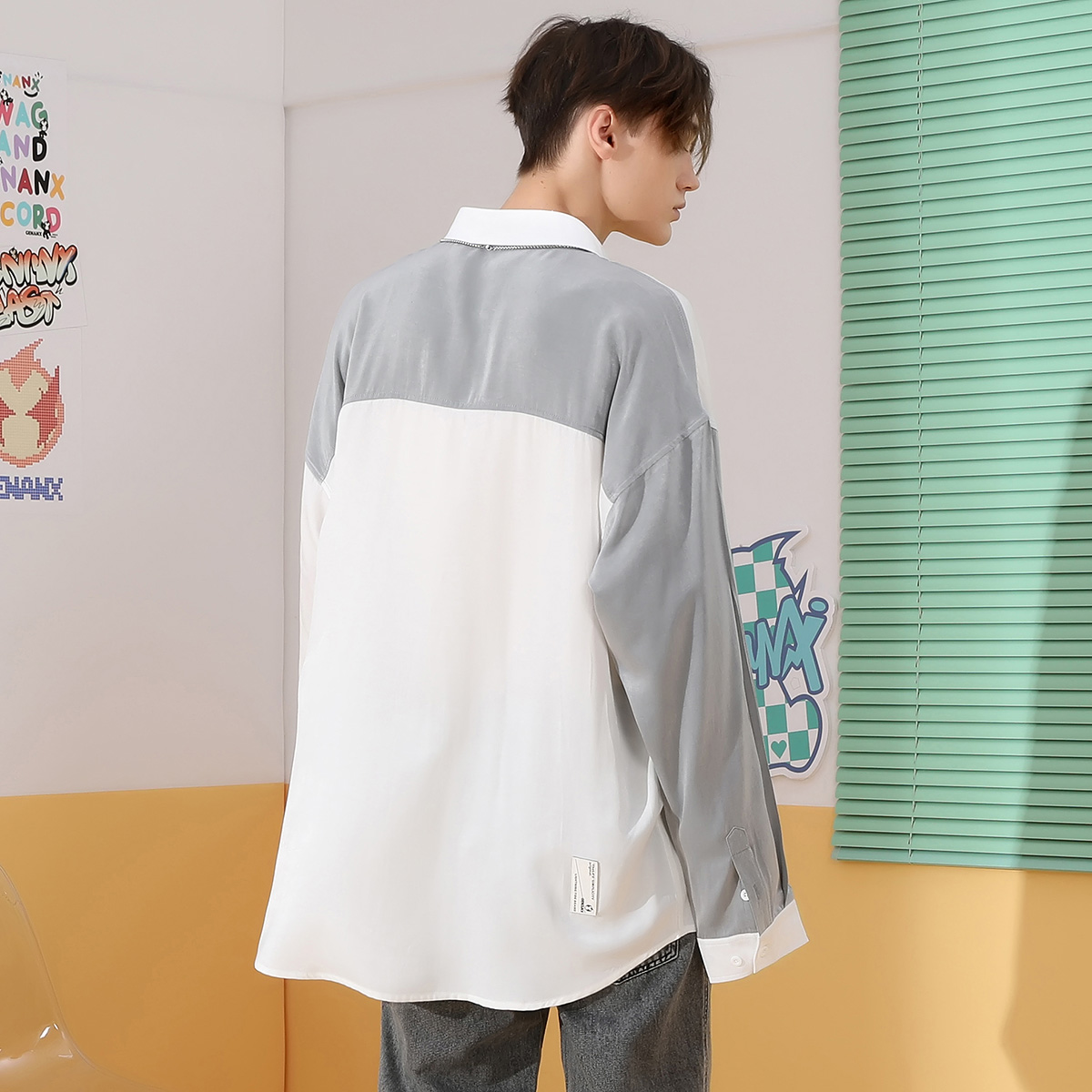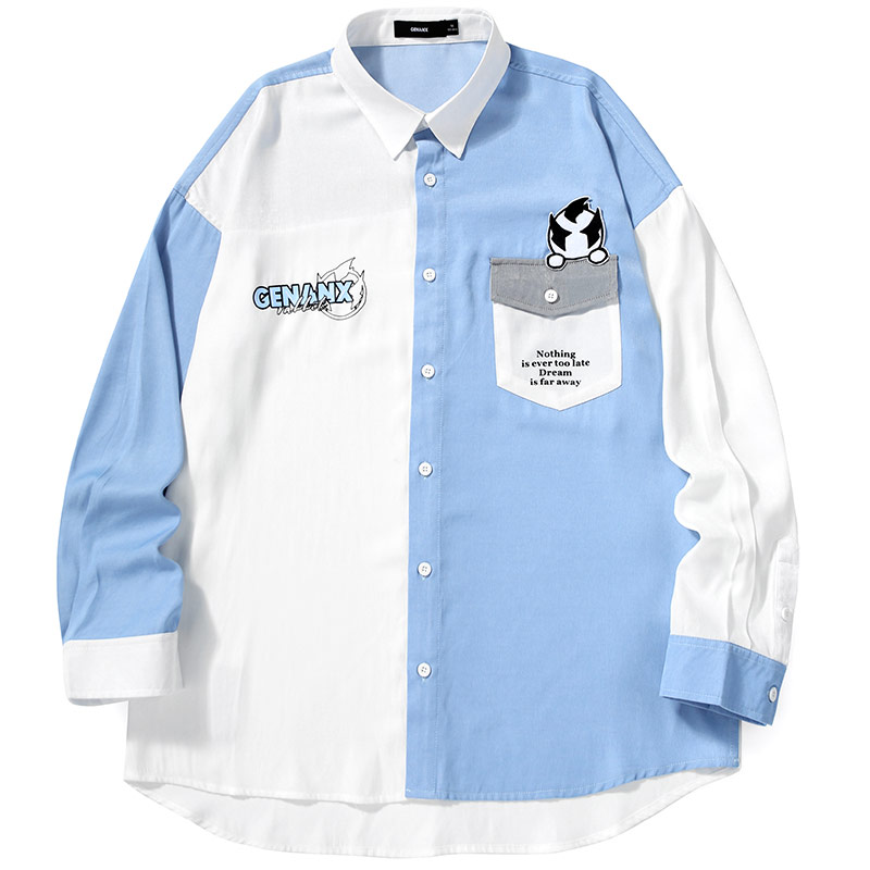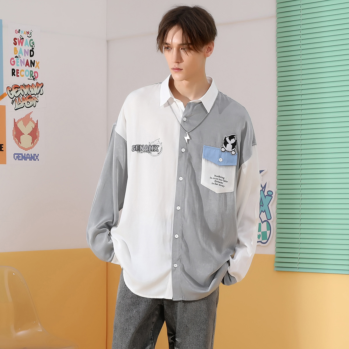 秋季 男长袖 外套情侣撞色拼接国潮衬衣 衬衫 GENANX闪电潮牌新款