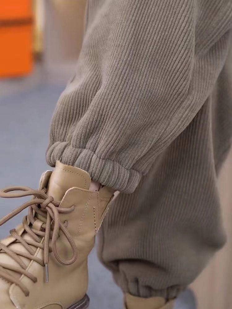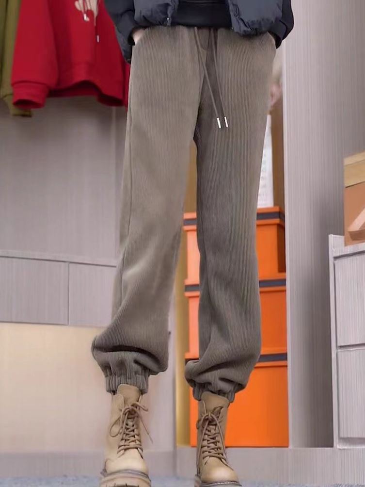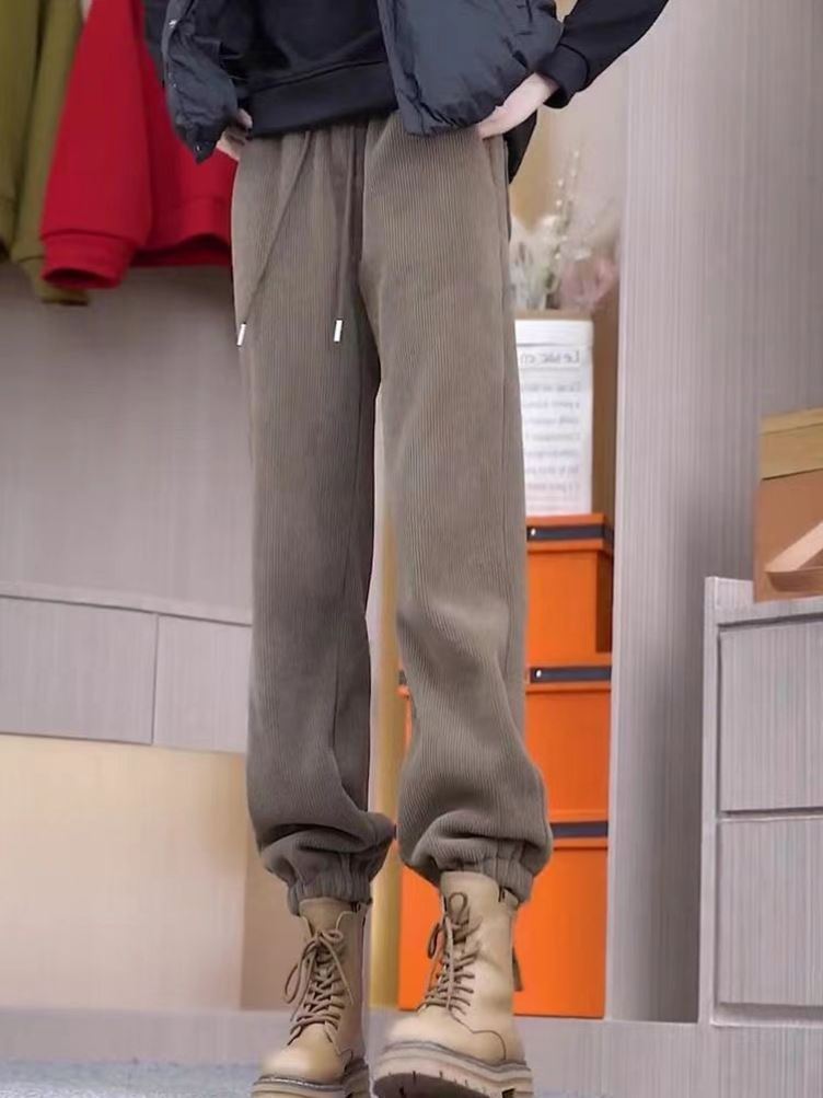 子女2023新款 宽松显瘦束脚加绒哈伦裤 秋冬季 女装 大码 加厚羊羔绒裤