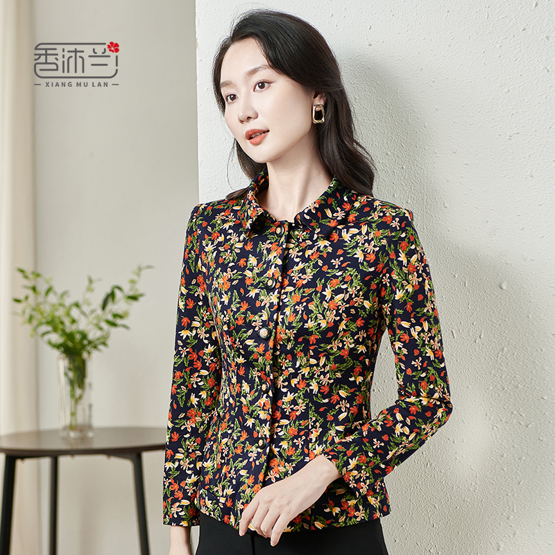 大码 碎花气质修身 外套上衣女 翻领中老年妈妈装 香沐兰2025秋冬新款