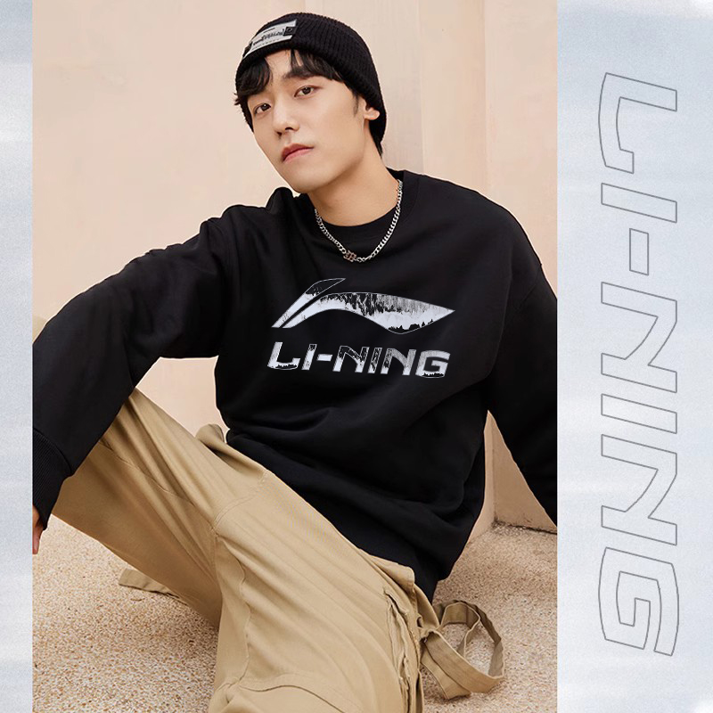 t恤男士 李宁卫衣男款 青少年长袖 新款 圆领套头加绒运动上衣 秋冬季