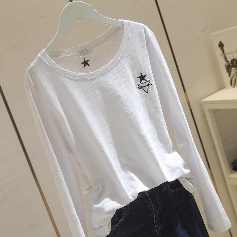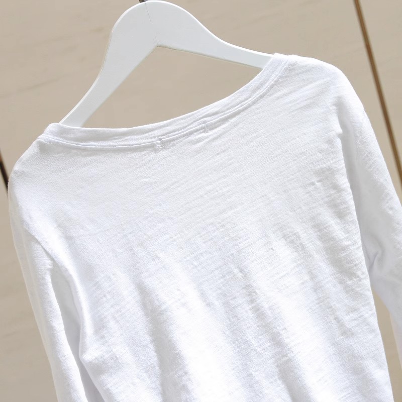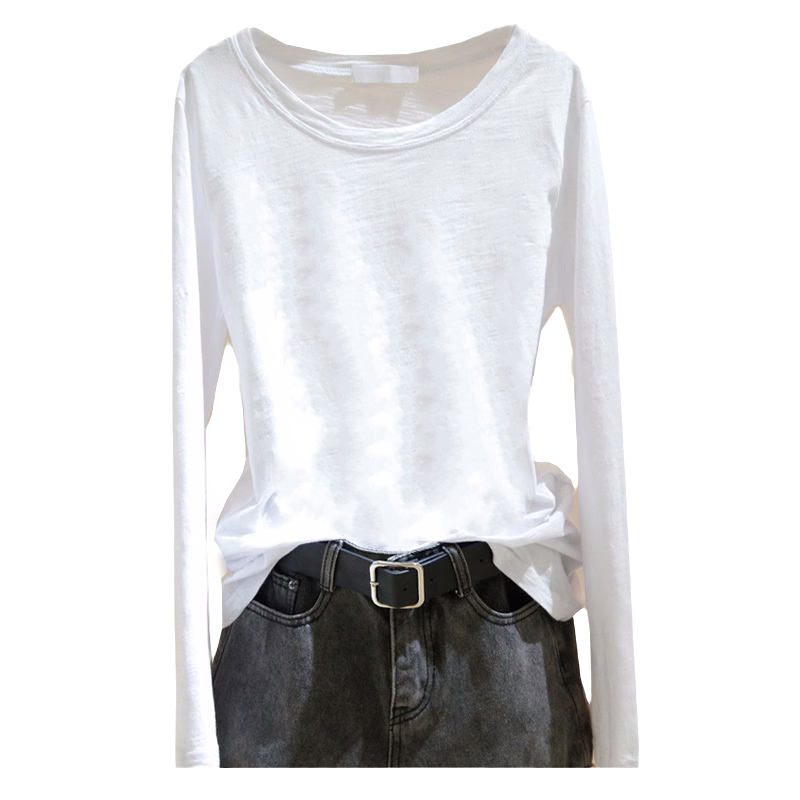 竹节棉t恤女长袖 2025年新款 圆领宽松外穿上衣 秋季 白色内搭打底衫