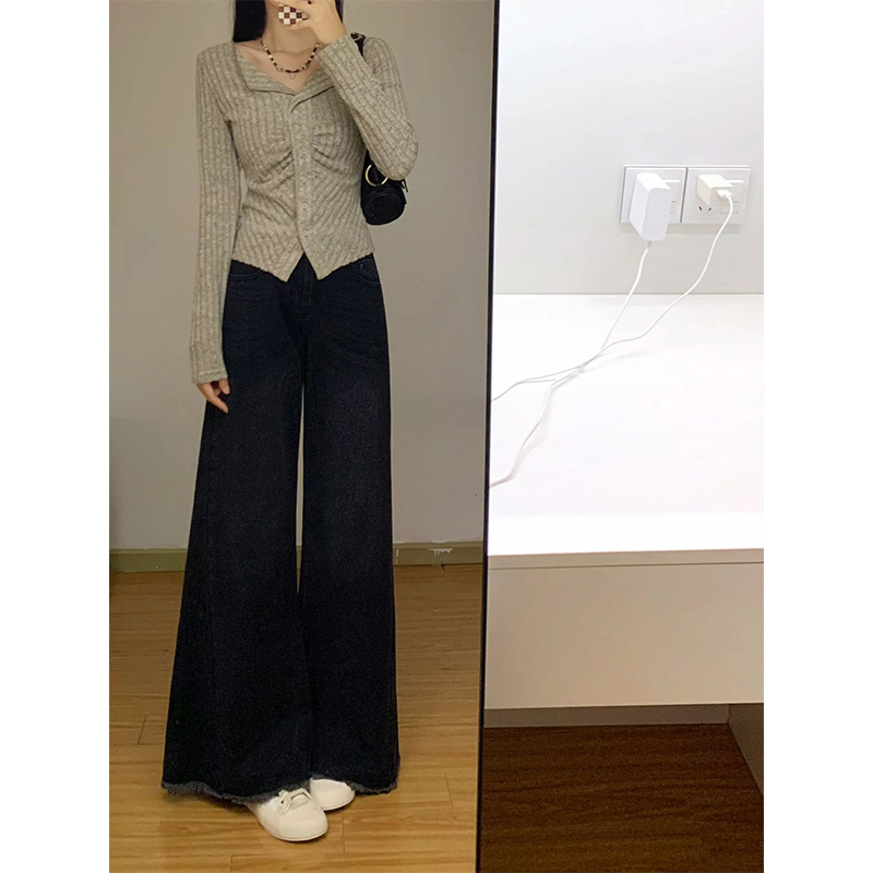 修身 美式 女秋冬设计感辣妹显瘦短款 打底针织开衫 上衣 复古V领长袖