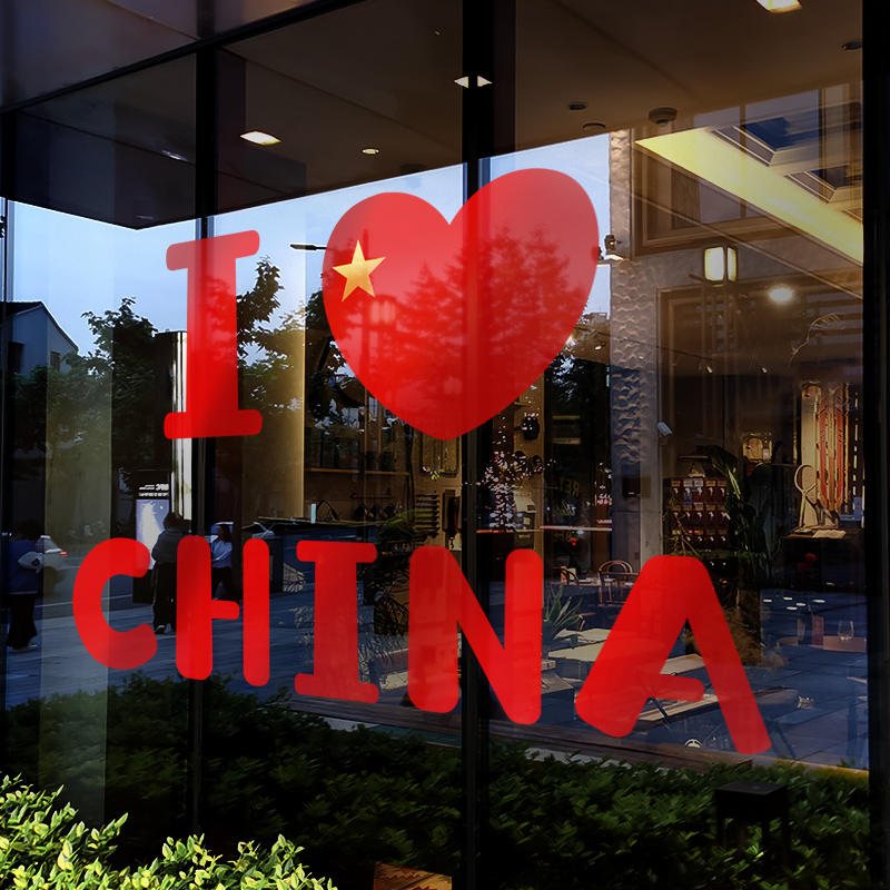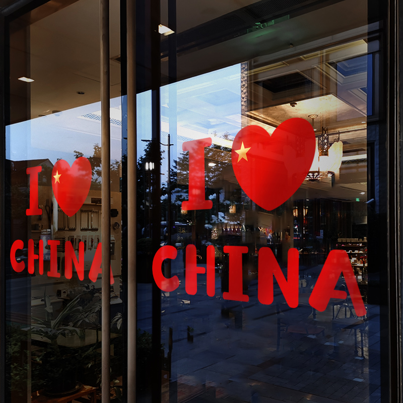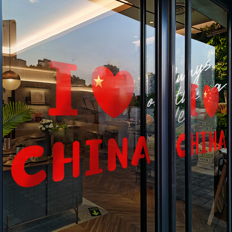 国庆节装 饰品氛围场景布置门贴珠宝店橱窗爱国爱心静电贴玻璃贴纸