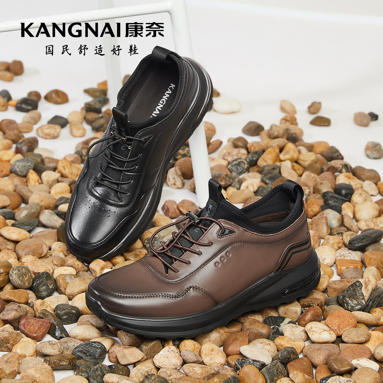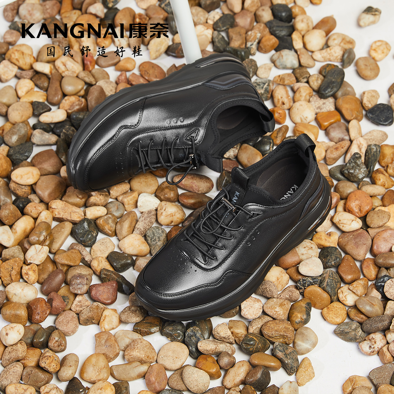 2025秋冬新款 男鞋 商务鞋 增高皮鞋 子 软底休闲系带圆头正装 奥康男鞋