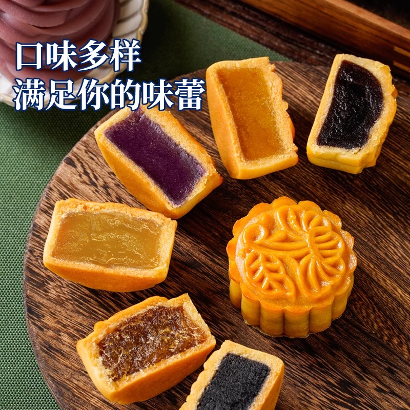 大规格10斤展艺广式 冰皮月饼食品馅红豆沙绿豆糕白莲蓉奶黄批发装