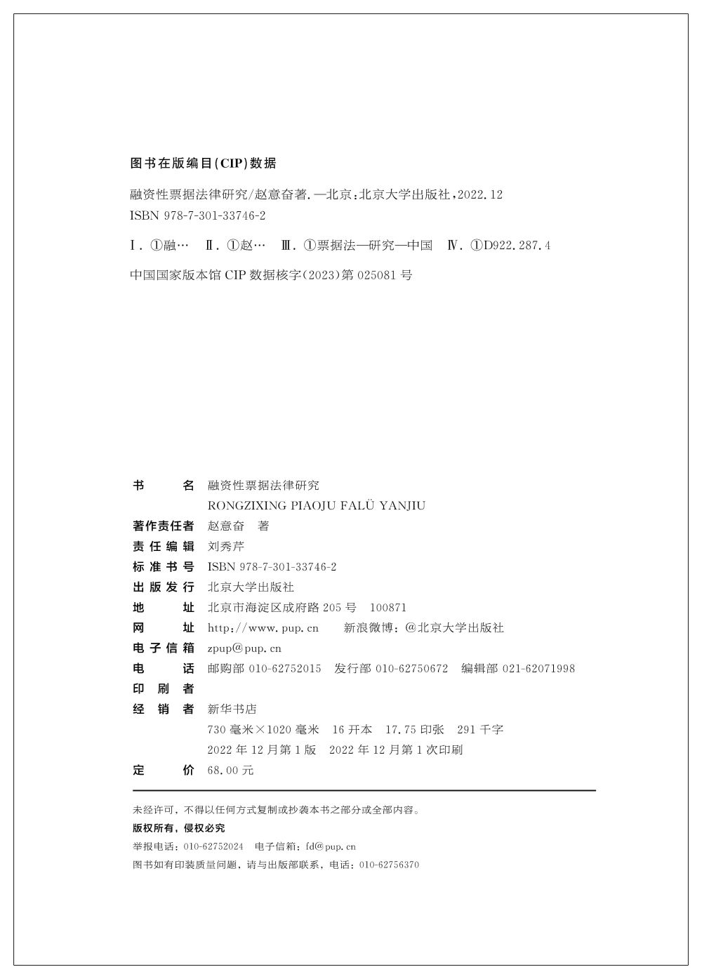 北京大学出版 正版 赵意奋 融资性票据法律研究 社9787301337462 新书