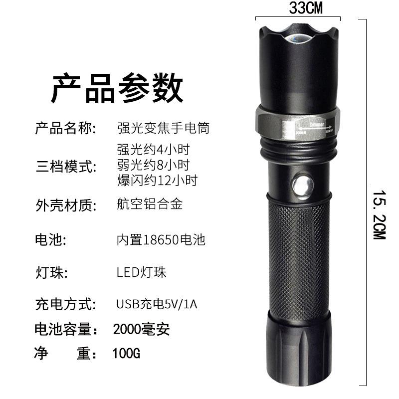 强光手电筒USB充电可调焦铝合金户外强光远射手电筒LED厂家直销