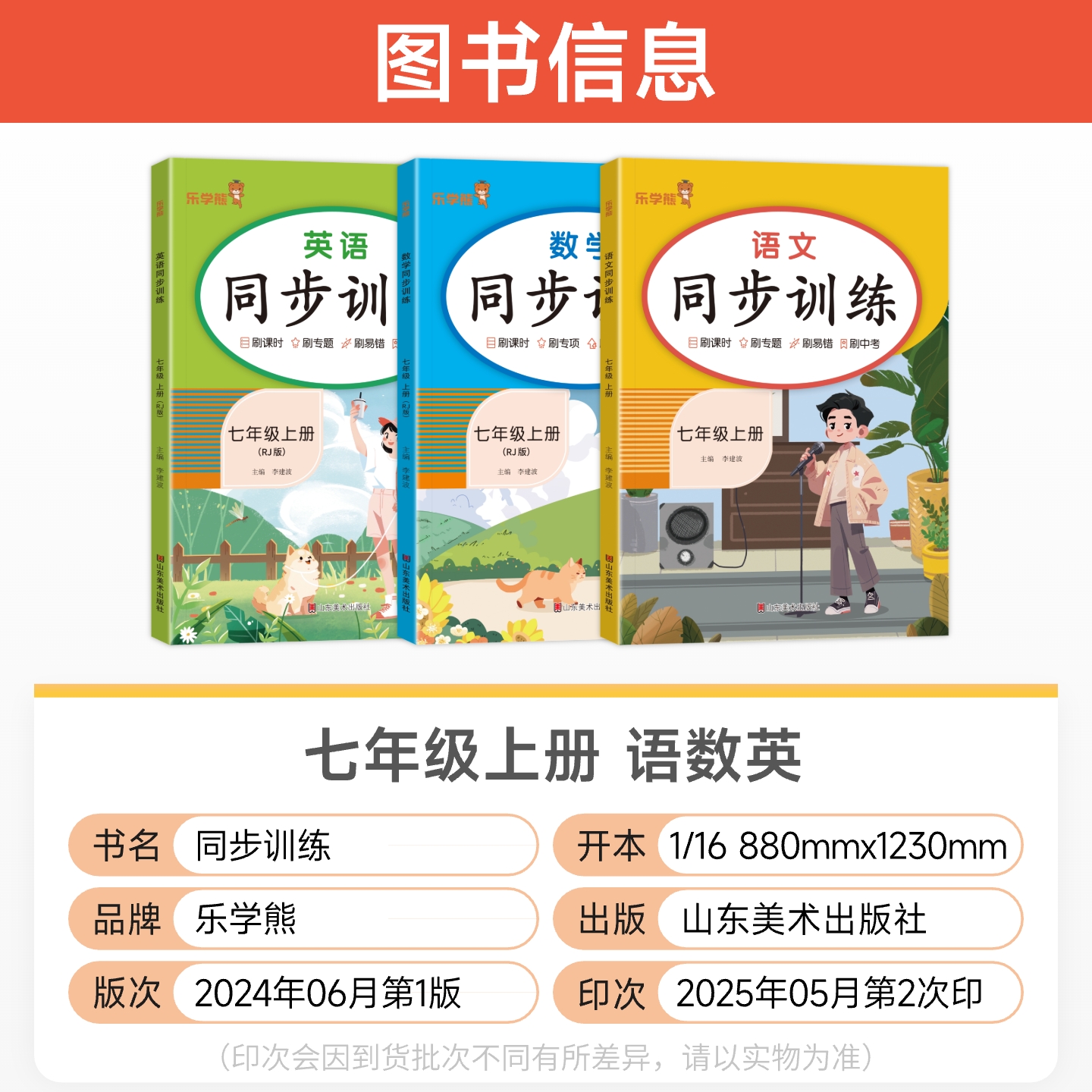2025秋初中同步训练七年级上册语文数学英语政史地生人教版 初一初二八年级上下册课时练习册作业本课课练天天练试题专项训练乐学熊