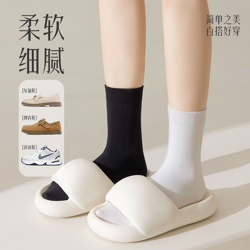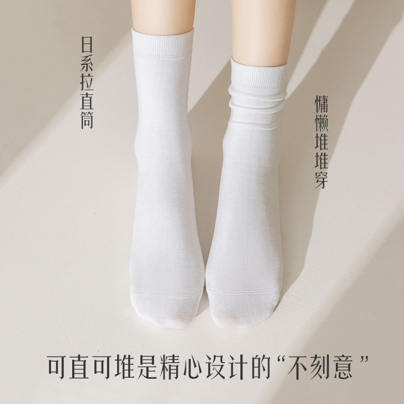 纯棉中筒袜子女款 防臭吸汗透气长筒袜 秋冬美拉德风无骨休闲袜冬季