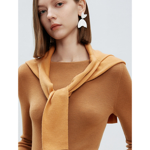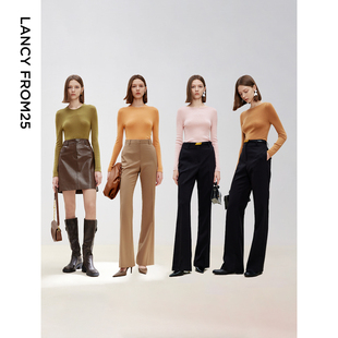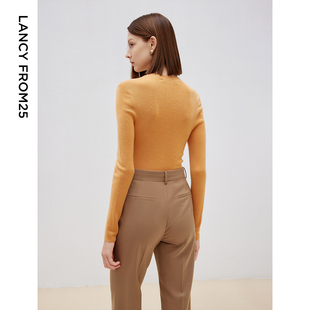 朗姿纯羊毛打底毛衣高智设计感气质上衣2025年春新款 女 毛针织衫