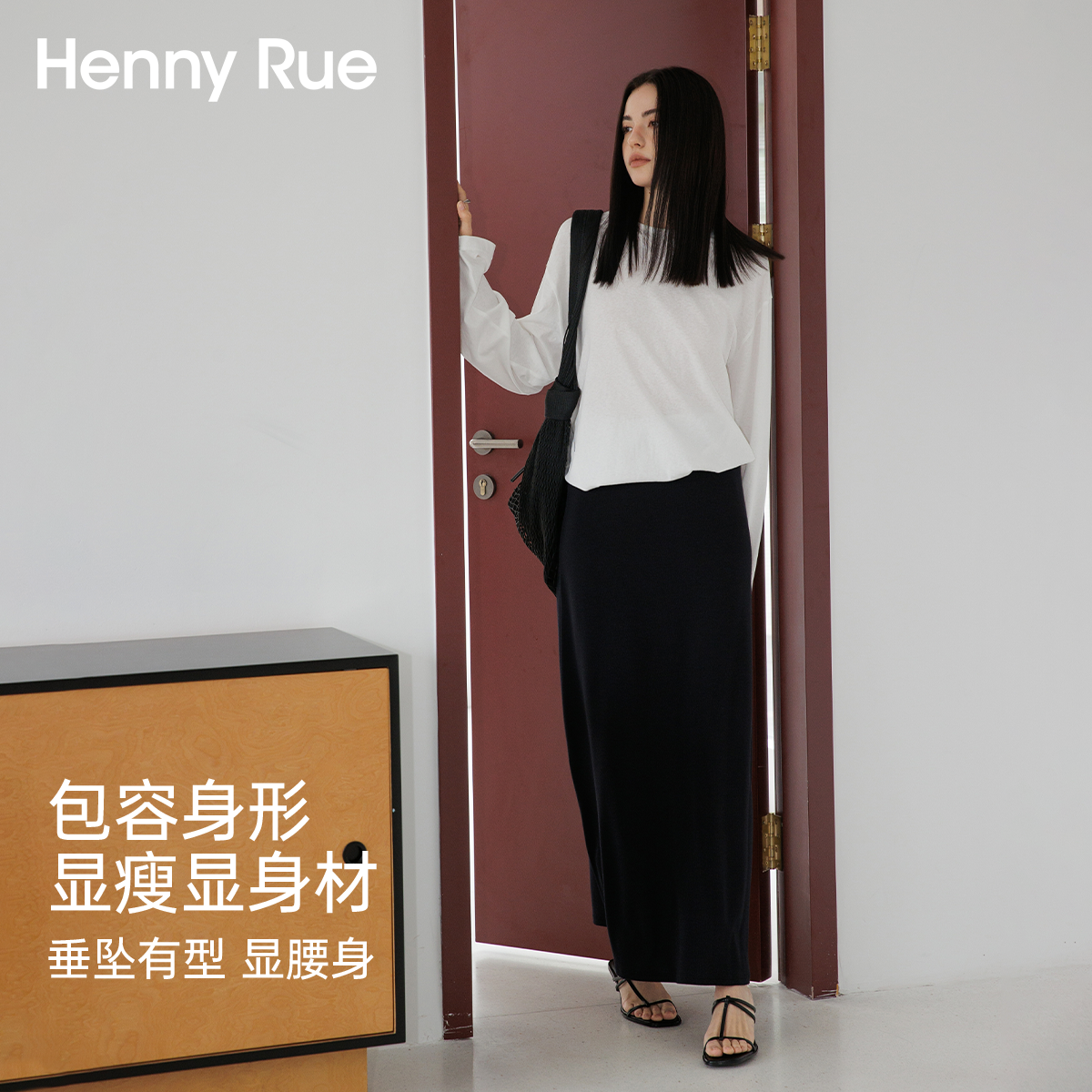 莫代尔包臀裙子 半身裙女2025夏季 HENNY RUE亨尼露纯色修身