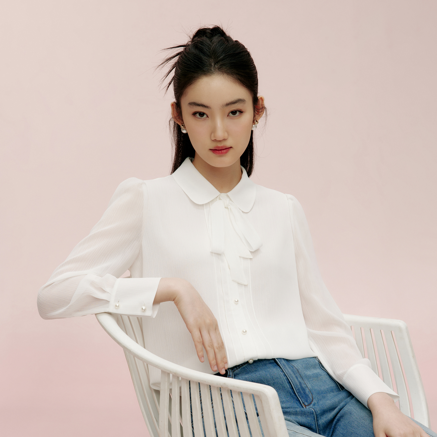 麻棉衬衫 知性通勤宽松长袖 佐丹奴新款 女05345498 韩国明星同款