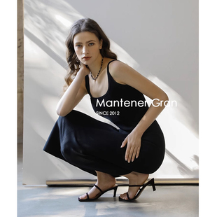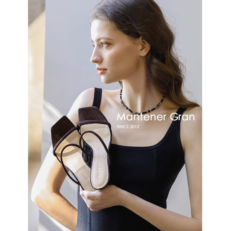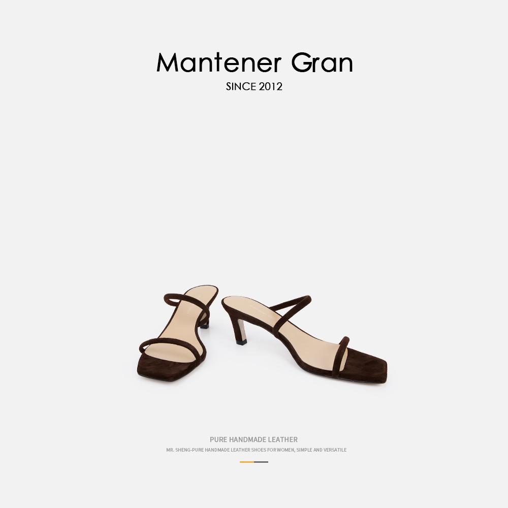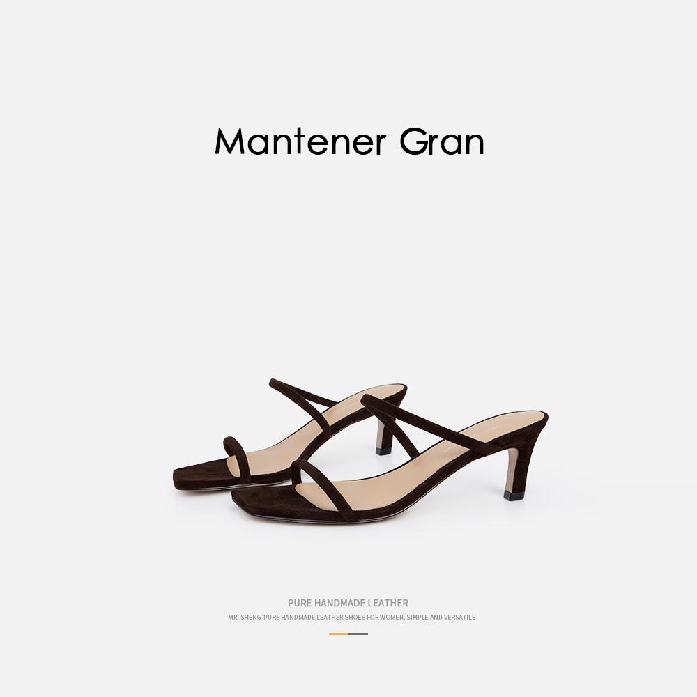 Gran法式 MG女鞋 高跟凉鞋 外穿 女凉拖细跟方头一字带拖鞋 Mantener