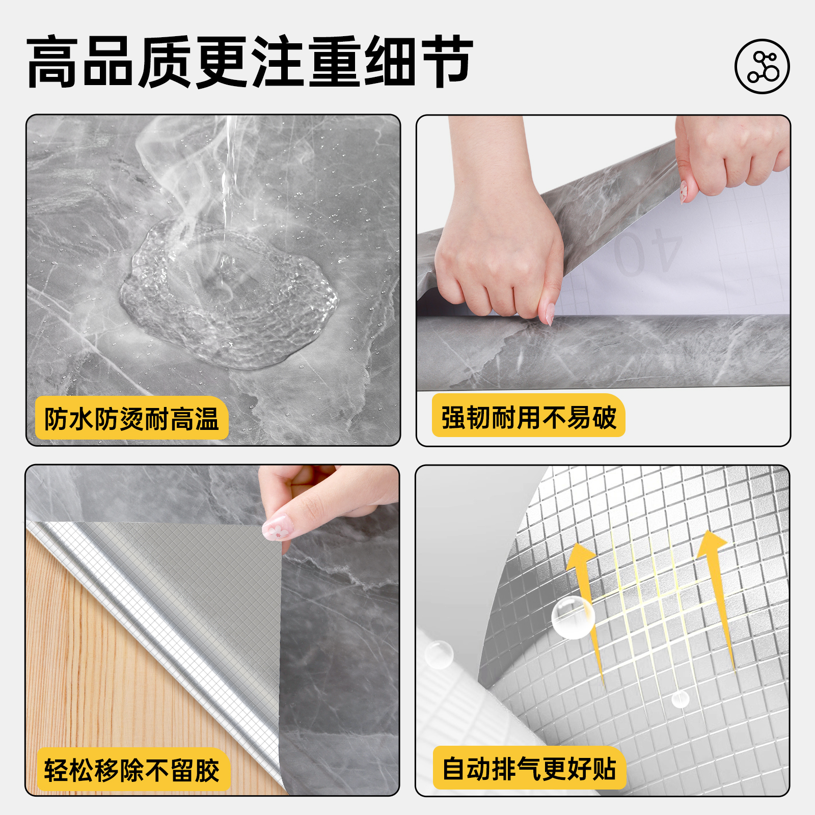 特厚厨房灶台防油贴纸防火耐高温墙纸橱柜台面专用翻新大理石贴膜