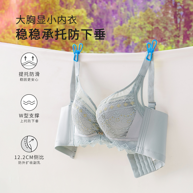 新光面上托侧推全罩杯大胸显小文胸 遐无痕内衣女薄款 小青提