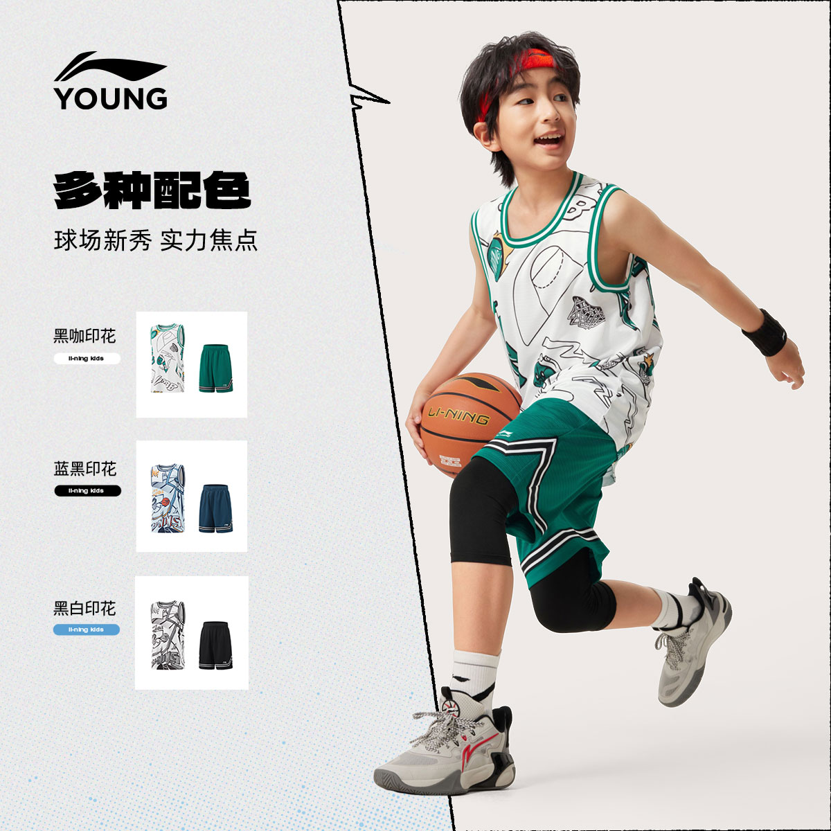 篮球系列凉爽宽松夏童装 男小大童2025新款 篮球比赛套装 李宁童装