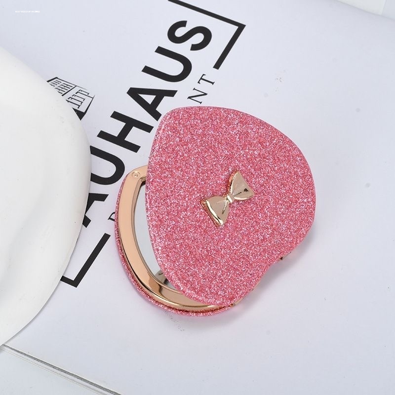 高档便携迷你小镜子随身携带高级粉色折叠学生时尚 化妆文化创意镜