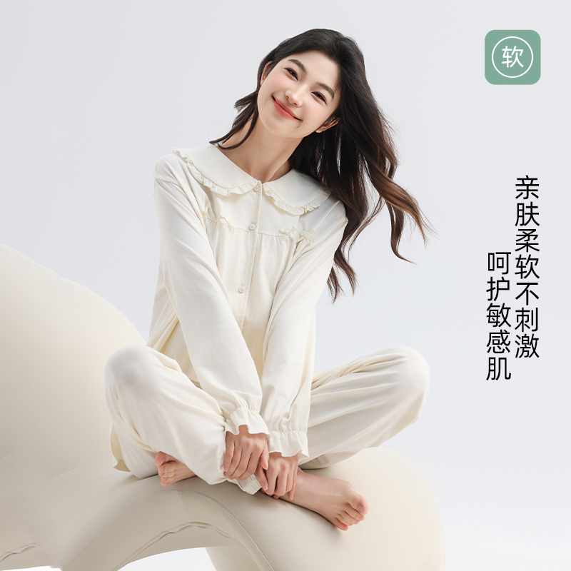 卡通可外穿家居服套装 猫人带胸垫纯棉长袖 2025新款 春秋季 睡衣女款