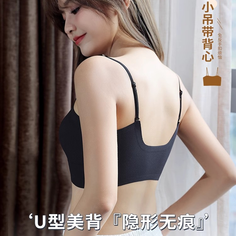可外漏细肩带内衣女聚拢收副乳防下垂无痕美背一体抹胸防走光文胸