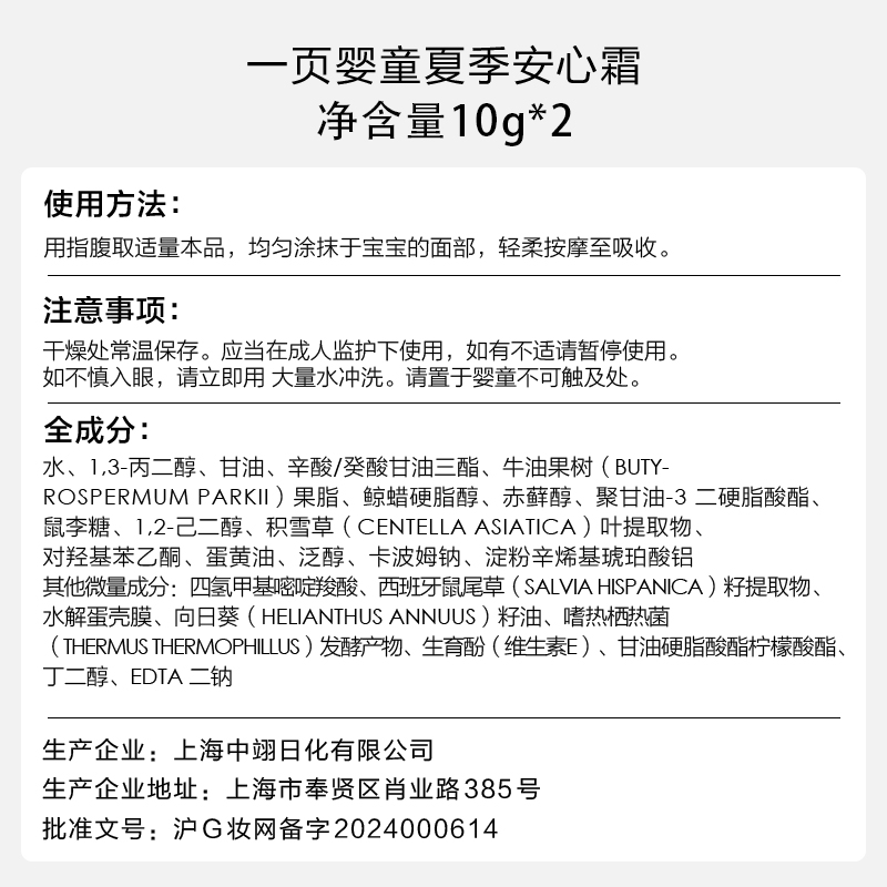 水润晒后舒缓降温 2沁爽保湿 newpage一页儿童夏季 安心霜10g