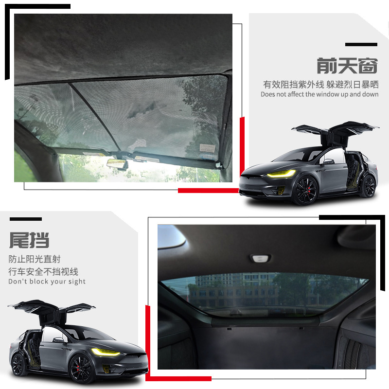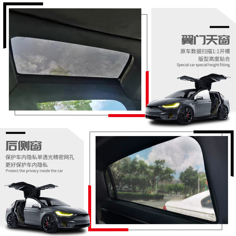适用特斯拉Model X天窗遮阳帘防晒隔热侧窗毛豆X透气车窗帘遮阳档