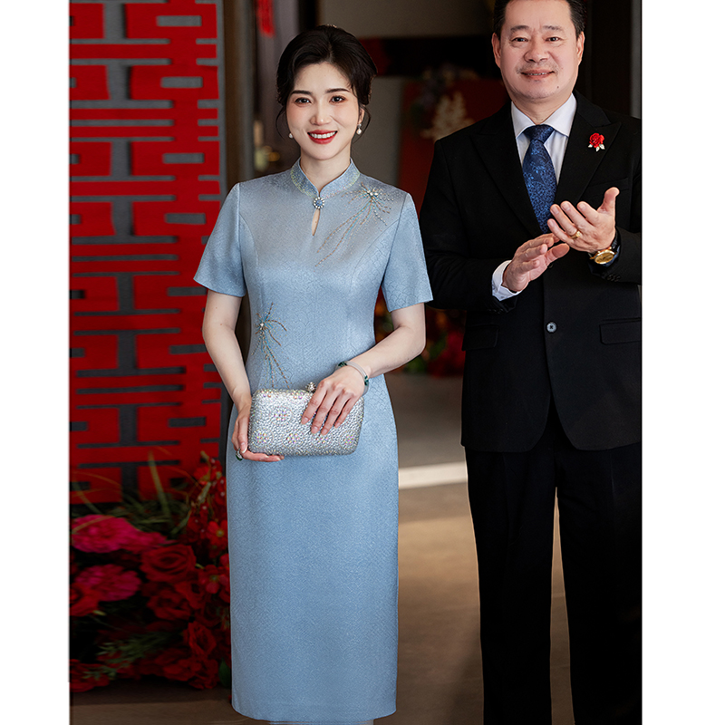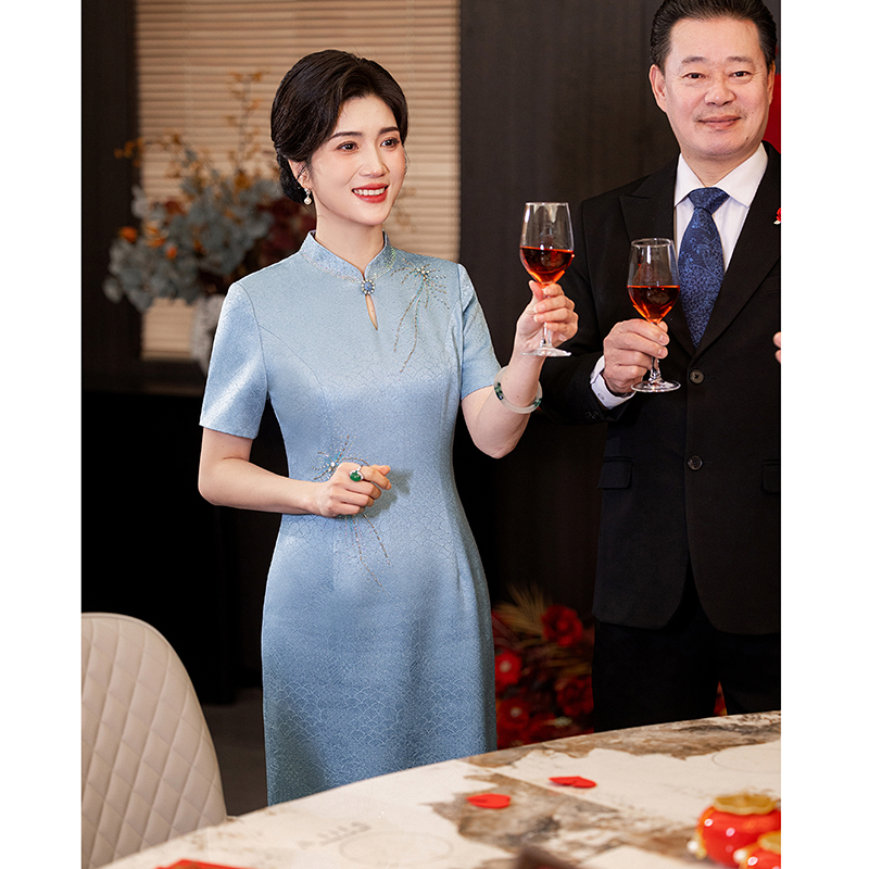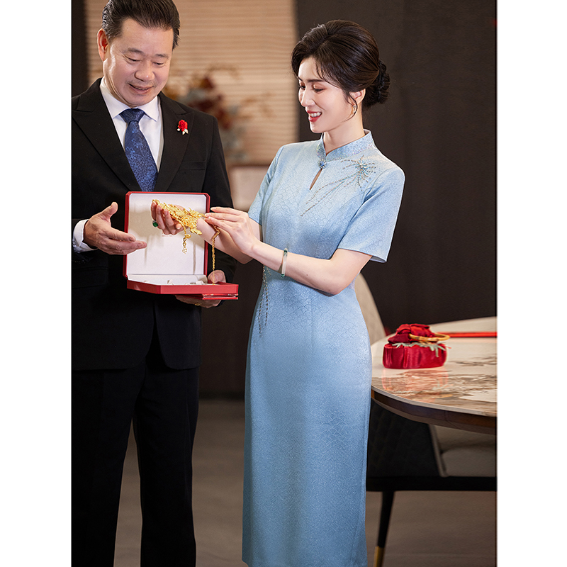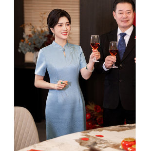 中式 短袖 礼仪迎宾颁奖新娘旗袍礼服 红色外嫁女回娘家回门装 2025款