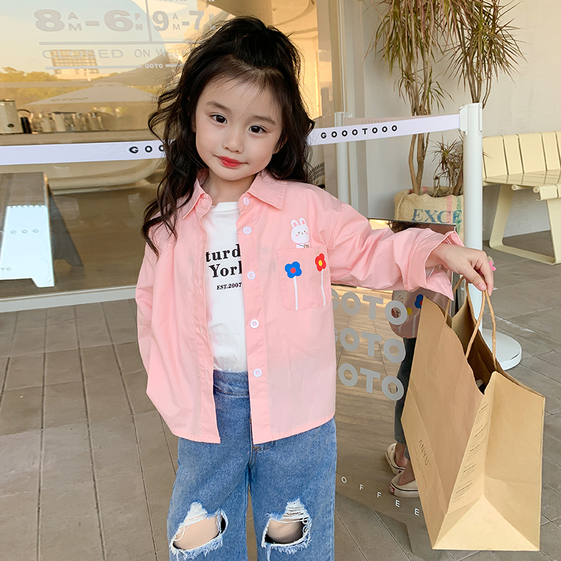洋气宽松中小童女孩粉色小兔子衬衫 新款 2025春秋季 女童衬衫