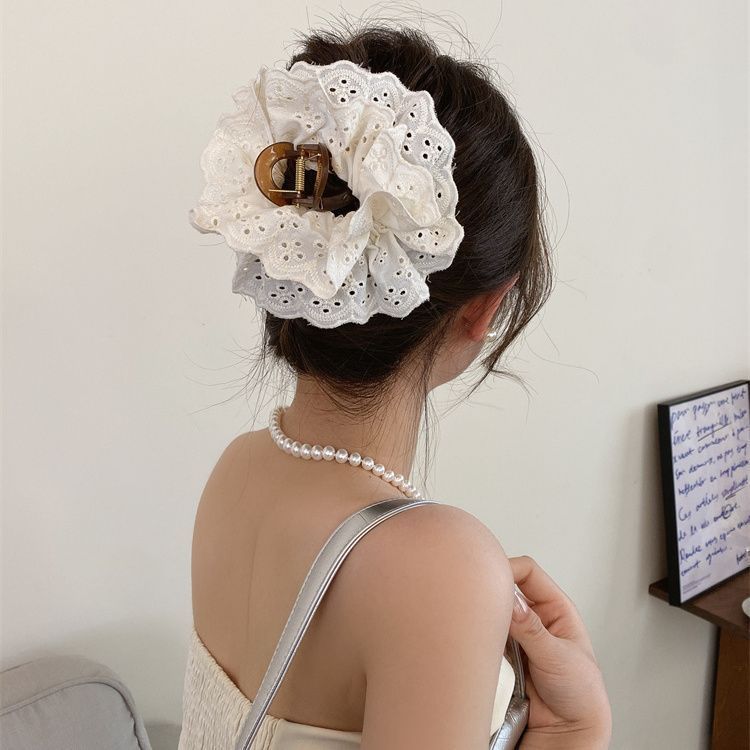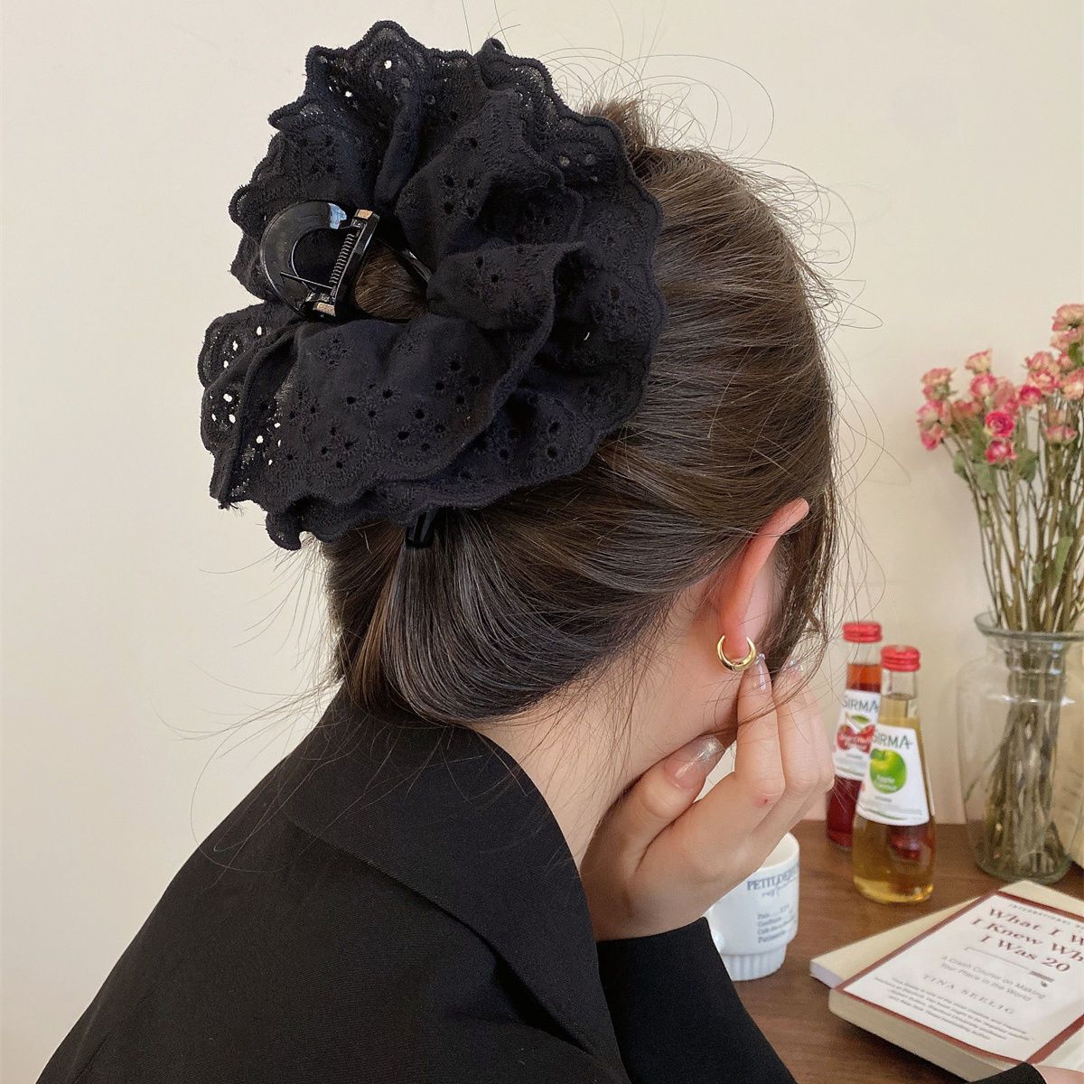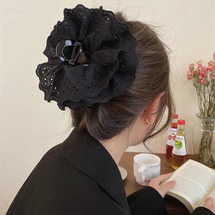 法式 优雅蕾丝大号抓夹芭蕾头饰后脑勺鲨鱼夹