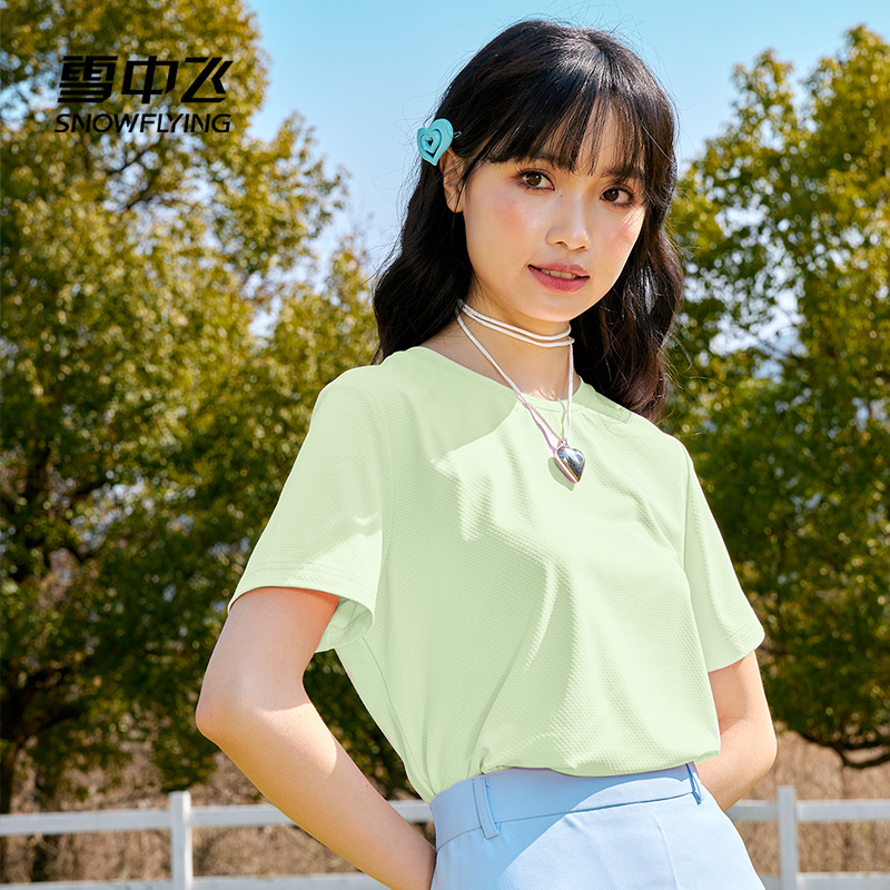 凉感上衣大码 薄款 胖mm显瘦体恤PC t恤女2025年夏季 雪中飞冰丝短袖