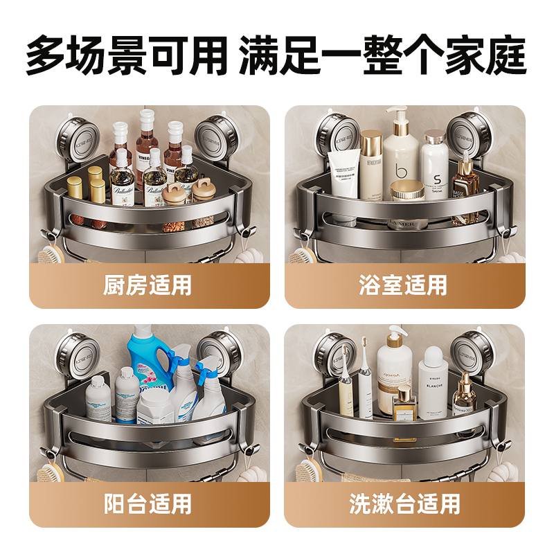 免打孔浴室置物架卫生间吸盘三角篮壁挂架洗手间洗漱台墙角收纳架