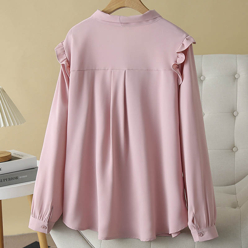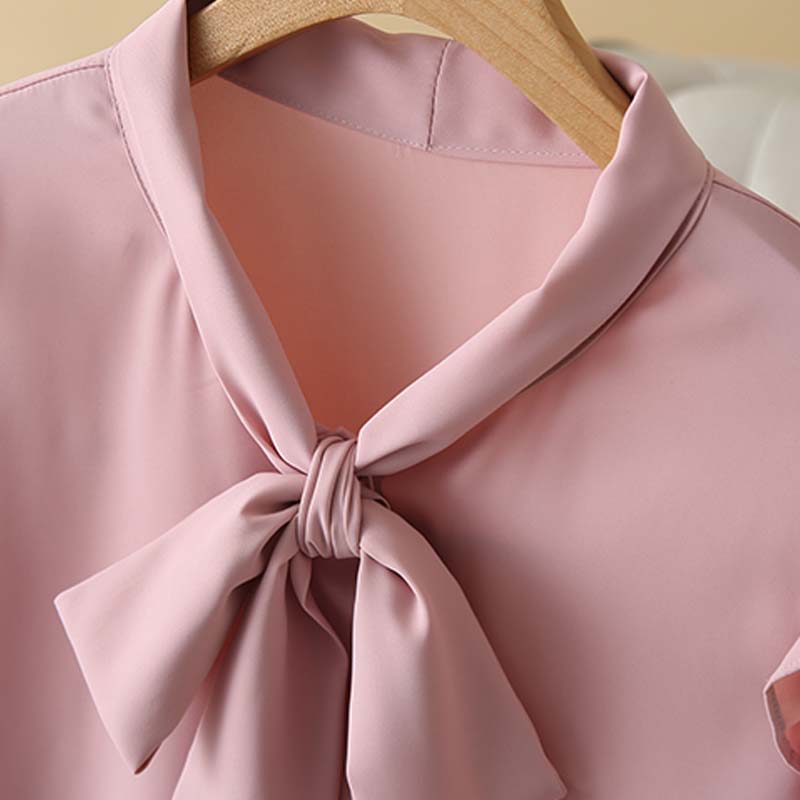 胖mm时尚 2025秋季 小衫 蝴蝶结通勤减龄长袖 系带上衣 气质休闲雪纺衫