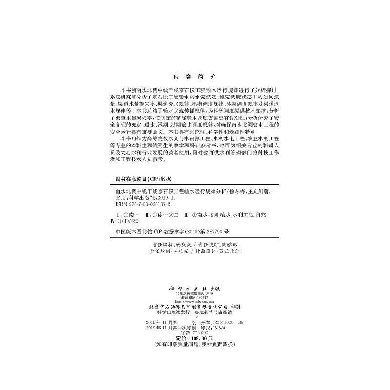 科学出版 全新正版 王文川 徐冬梅 社 南水北调中线干线京石段工程输水运行规律分析