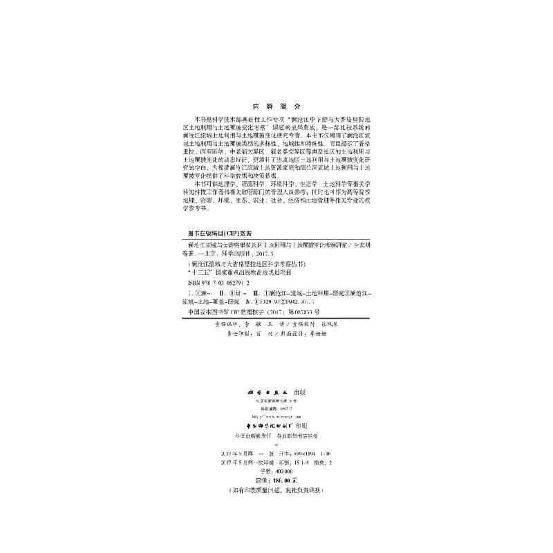 科学出版 全新正版 等 封志明 社 澜沧江流域与大香格里拉地区土地利用与土地覆被变化考察研究