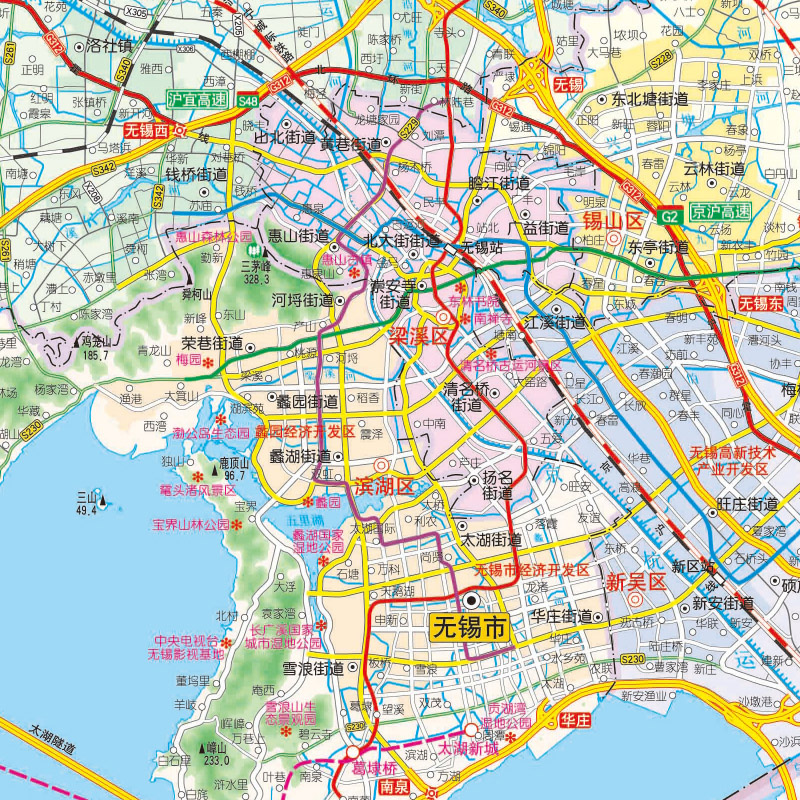 无锡地图街道详图 公路交通 轨道交通示意图 景点导航图 中国旅游地图 2025版 中图社city城市系列中国旅行 无锡CITY城市地图