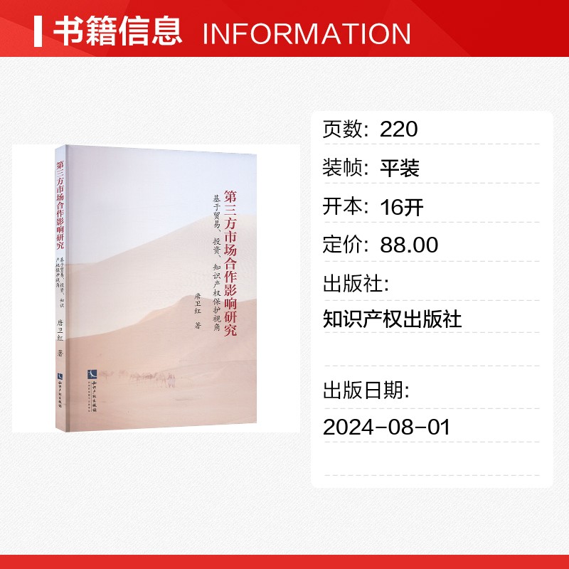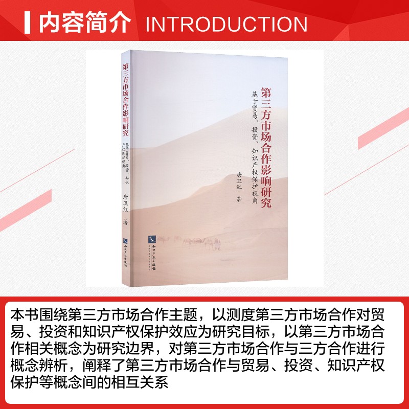 金融投资社科 社 投资 知识产权出版 图书籍 新华书店正版 著 唐卫红 知识产权保护视角 基于贸易 第三方市场合作影响研究