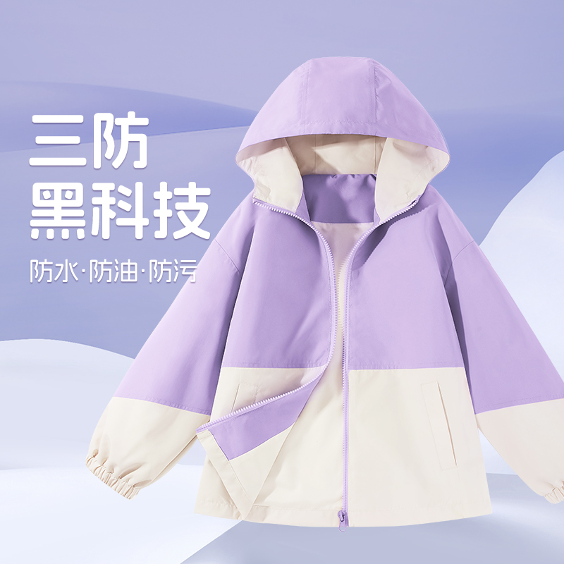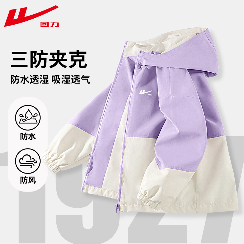 夹克 小女孩粉色拼接上衣儿童户外秋装 回力童装 女童冲锋外套春秋款