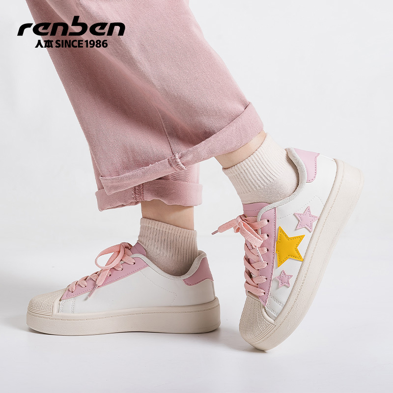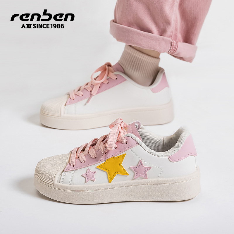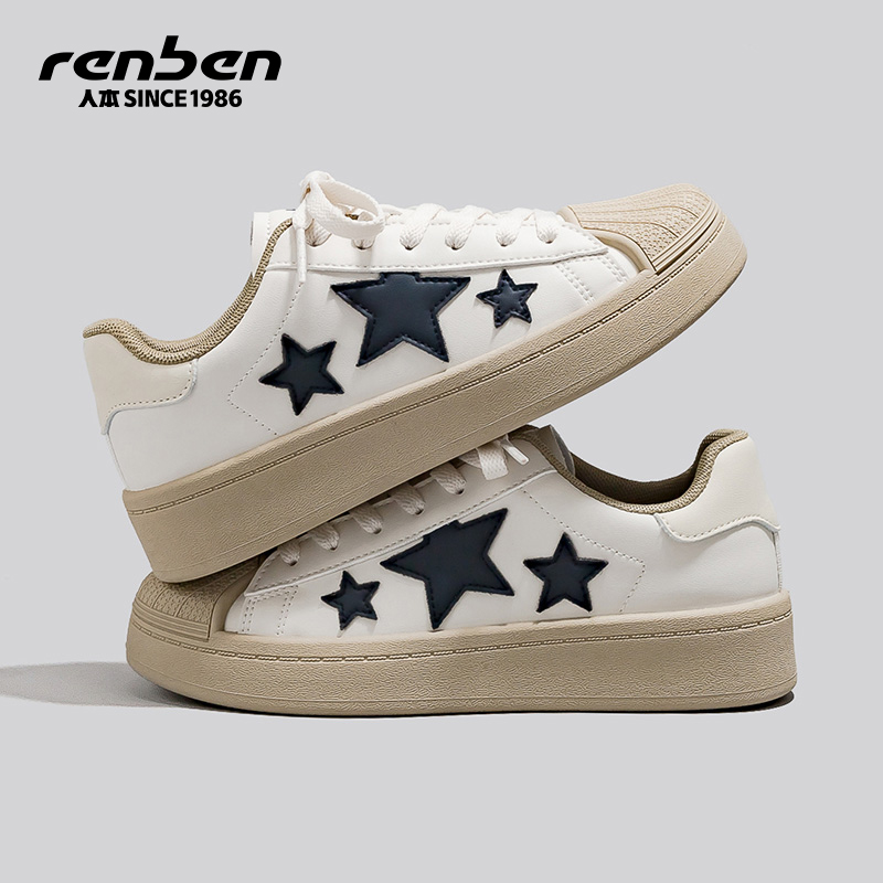 新款 2025春季 时尚 百搭运动休闲爆款 人本贝壳头小白鞋 星星板鞋 女款
