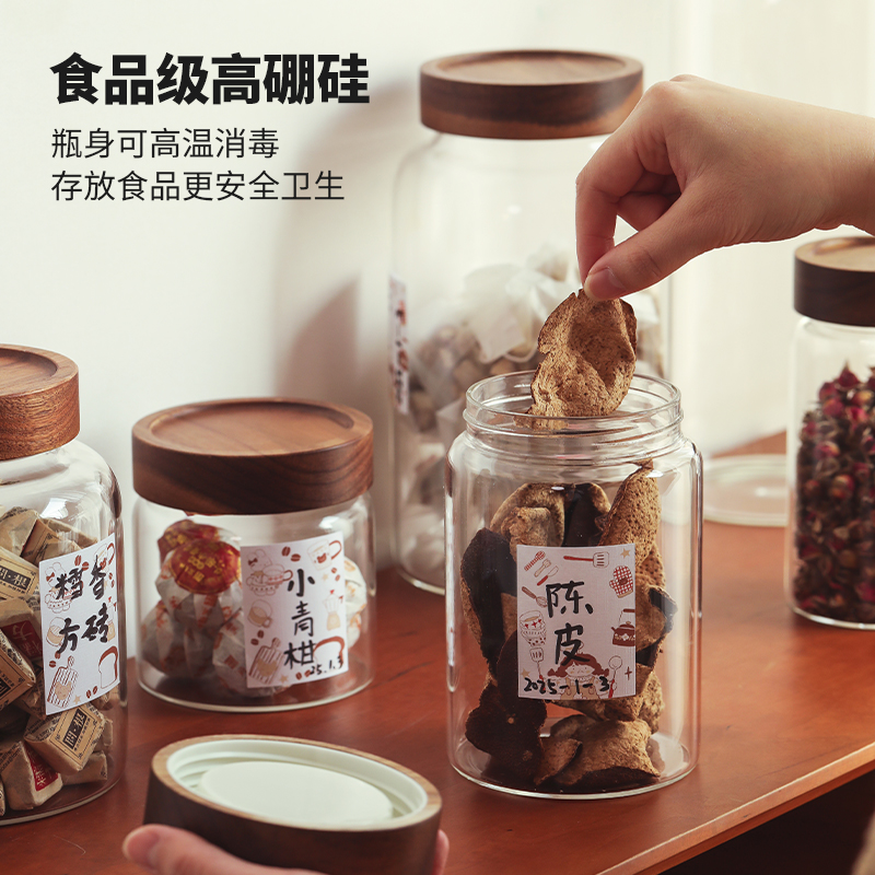蓝莲花透明高硼硅玻璃茶叶罐密封罐食品级储物罐子家用厨房储物罐