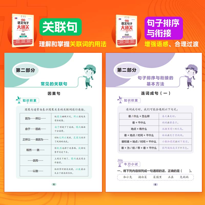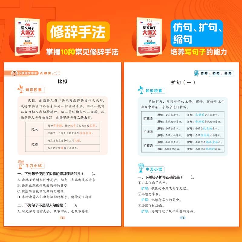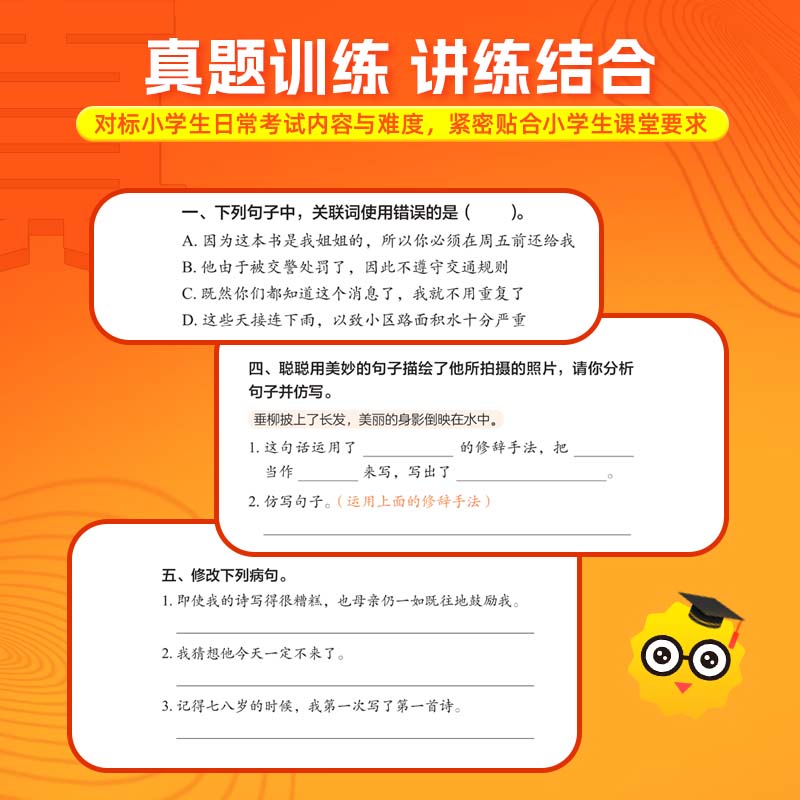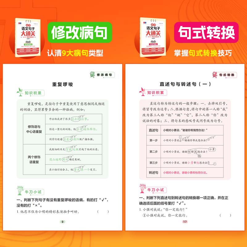 一二三四五六年级 转换修辞手法仿句扩句缩句关联句句子排序与衔接 通用版 修改病句句式 真题训练 全六册 小学语文句子大通关
