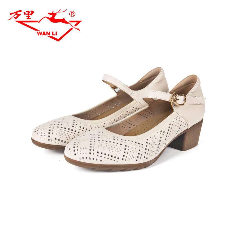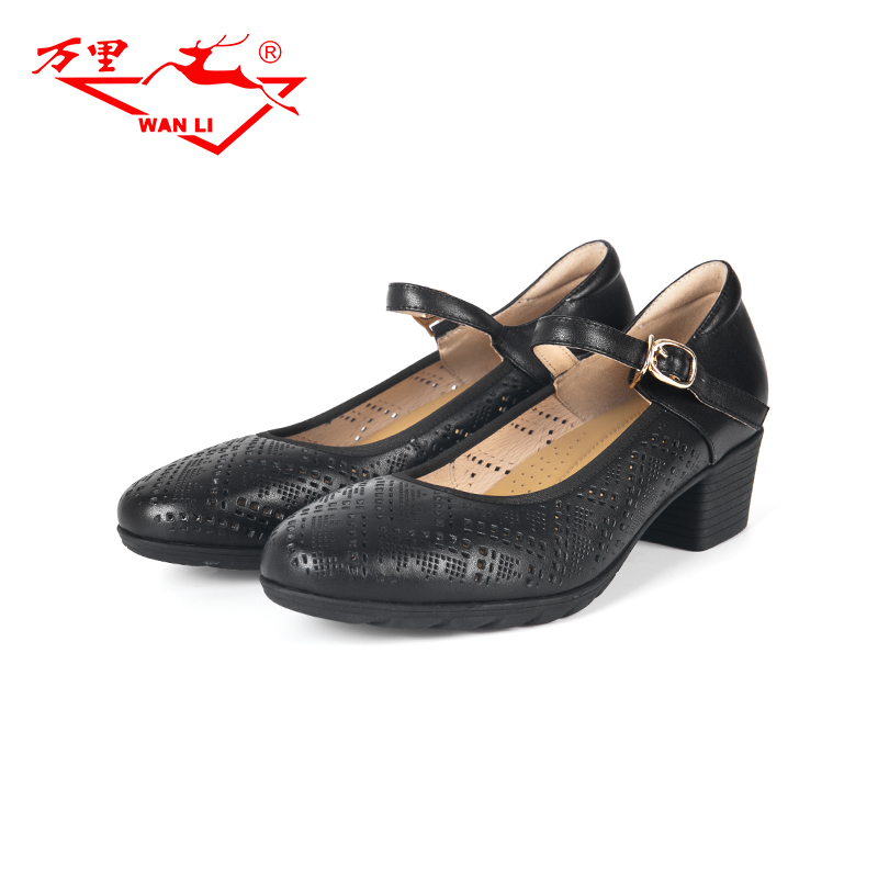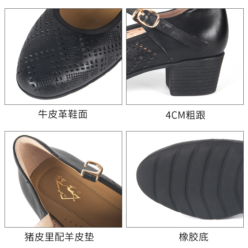 单鞋 羊皮浅口法式 千百度粗高跟鞋 异形跟职业通勤大码 静音系列